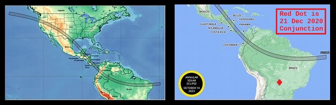 There would not be another solar eclipse over the contiguous United States until 2044, a time span of 20 years. The preceding 7 year span of time included, all totaled, three solar eclipses, two Lunar Eclipses of social significance, a Great Conjunction of Jupiter and Saturn, and a G5 Aurora Borealis. All this is happened a time when the sins of the fathers are being visited upon the third and the fourth generation of those who committed the offenses and set the United States and the World at large on a path of destruction! Here is a quick rundown of the Celestial events: ![]() Let us examine the astronomical/astrological details of these events. On Mon 21 Aug 2017 a Total Solar Eclipse swept across the Contiguous United States from Northwest to Southeast. It did not touch any other nation. At 18:13:13 UTC at 92º33.48' W Lon and 38º55.68' N Lat, directly in the center of the path of Totality, the Eclipse had an azimuth angle of exactly 180º due South at High Noon. At this time and place the altitude of the Sun was 62º54' above the horizon. The period of totality lasted 160.51 seconds. Here is an astrological rundown on this Solar Eclipse. Universal Clock Date = Mon 21 Aug 2017 ![]() At precisely midnight as viewed at 056º53’E lon, just 17 hours before Mars came into opposition to the Sun, an extraordinary Lunar Eclipse occurred. The people living in the heart of the World of Islam had a front row seat to the event. They witnessed the "Blood Moon" forming just 6 degrees almost directly above Red Mars, the planet of bloody war. Here are the details. Please pay attention to the Celestial position of the Sun and the Moon, we will come back to it later ![]() Universal Clock Date = Fri 27 Jul 2018 UTC ![]() Just three hours and 12 minutes after the Winter Solstice of 2020, the Great Planets of Jupiter and Saturn conjoined with less that six minutes of separation. This was a rare celebrated event. Astrologically, this was a sign of a Great Reset in the World. This event occurred during a time that the Moon was wandering to and fro in Aries. It entered Aries on 22 Jun 2020 and did not exit until 06 Jan 2021. Here are the details of this event. Pay attention to the Celestial position, we will get back to it later. Mars Opposition Sun = Tue 23:20 UT 13 Oct 2020 Mars goes Direct in Aires = Sat 00:35:00 UT 14 Nov 2020 Winter Solstice = Mon 10:00:00 UT 21 Dec 2020 Universal Clock Date of Conjunction = Mon 21 Dec 2020 Universal Clock Time of Conjunction = 13:12 Terrestrial Longitude for Conjunction Zenith = 057º15’W Terrestrial Latitude for Conjunction Zenith = 20º28’S Mars Enters Taurus Direct = Wed 22:27 UT 06 Jan 2021 Mars was continually present in Aires for 6 months and 10 days. ![]() On Tue 08 Nov 2022, in the wee hours just before the opening of the polls for the United States midterm election, the people pf the United States were witness to a Lunar Eclipse in the West. This event came with a bonus. 30 days after this event, Mars came into both opposition to the Sun and in conjunction with the Sun. At high latitudes the Moon passed in front of Mars. Here are all of the details. Universal Clock Date of Conjunction = Tue 08 Nov 2022 ![]() Mars con Moon: On Sat 14 Oct 2023 an Annular Solar Eclipse swept across the Contiguous United States from Northwest to Southeast as well as South America. In its passage across the United States, specifically the Western United States, it was visible to the East of South. It was never be visible at "High Noon" anywhere within the United States. That "honor" was be reserved for Central America. ![]() The following is an astrological/astronomical profile of this